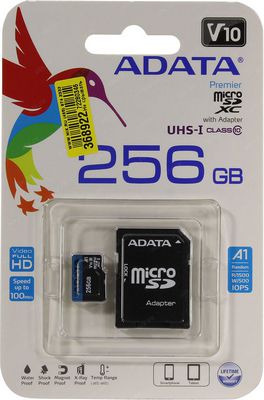Карта памяти 256Гб A-Data AUSDX256GUICL10A1-RA1 microSDXC Class 10 SD адаптер UHS-I A1 100/25 MB/s (SD адаптер)