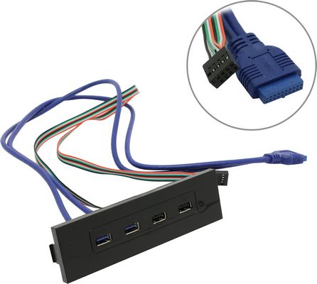 Описание Устанавливаемая в отсек 5.25" панель с 2 портами USB 3.0 и 2 портами USB 2.0, подключается к 20-пиновому и 10-пиновому внутренним разъемам на материнской плате