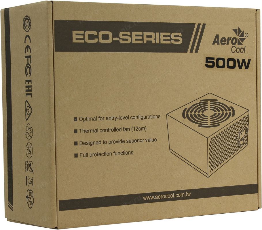 Блок питания Aerocool ECO-500W ATX 500W (24+4+6пин)
