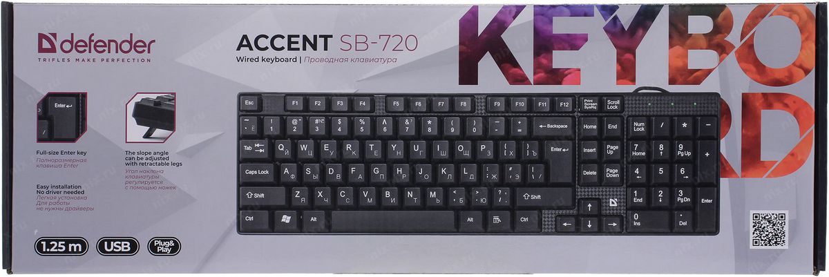 Клавиатура Defender 45720 USB черный Accent SB-720 RU,компактная Проводная Accent SB-720 RU,компактная