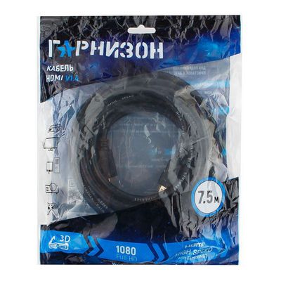 Кабель Гарнизон GCC-HDMI-7.5M HDMI Гарнизон 7.5м, v1.4, M/M, черный, пакет (GCC-HDMI-7.5М)