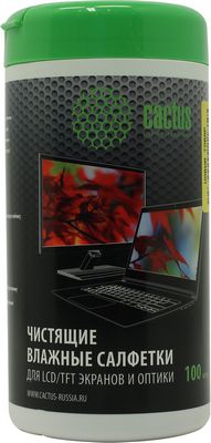 Салфетки Cactus CS-T1001 для экранов и оптики, 100 шт отгружать кратно 20 шт.