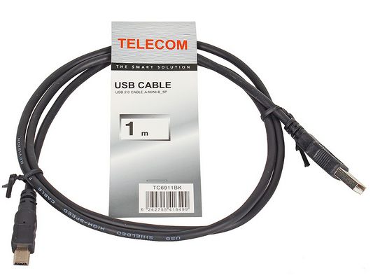 Кабель USB Telecom TC6911BK-1.0M USB2.0 (AM)-mini (BM) 1,0м черный
