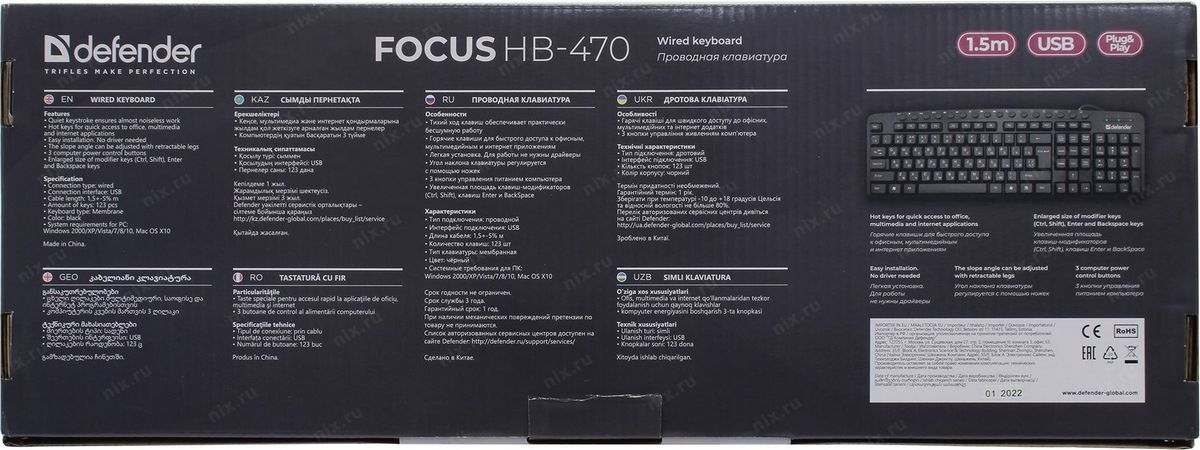 Клавиатура Defender Focus HB-470 USB черный бесшумная (45470)