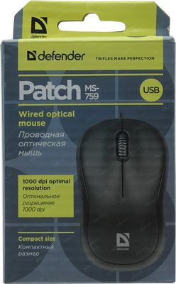 Мышь Defender 52759 проводная оптическая черный Patch MS-759 ,3 кнопки, 1000 dpi