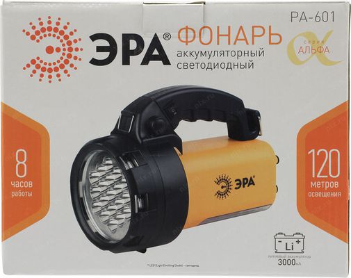 Прожектор ЭРА Б0031036 Фонарь- PA-601 АЛЬФА [19xLED + 24xLED, литий 3Ач, ЗУ 220V+12V}